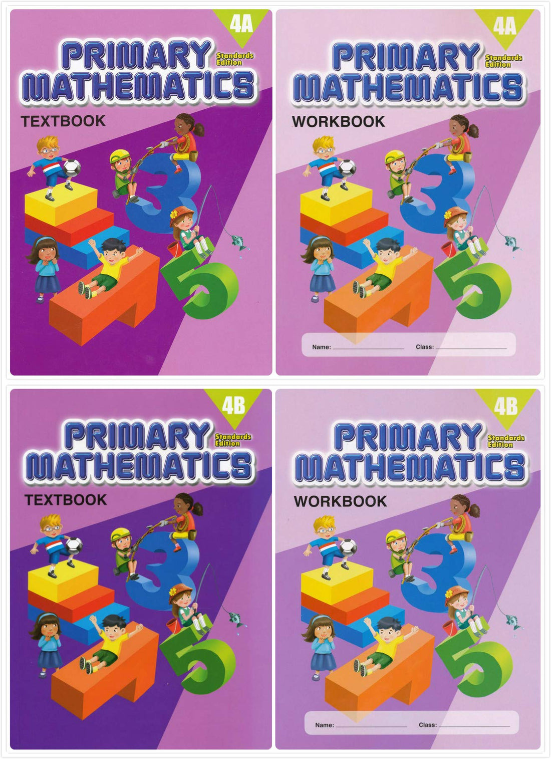 Singapore Primary Mathematics Level 4 Kit (Standard Edition), Textbooks 4A and 4B, and Workbooks 4A and 4B (4 Books)