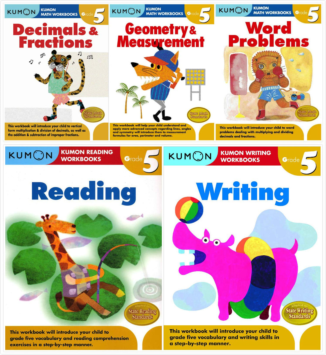 This Kumon Workbooks Set includes 5 books: 1, Grade 5 Decimals&Fractions 9781933241593.2, Grade 5 Geometry&Measurement...