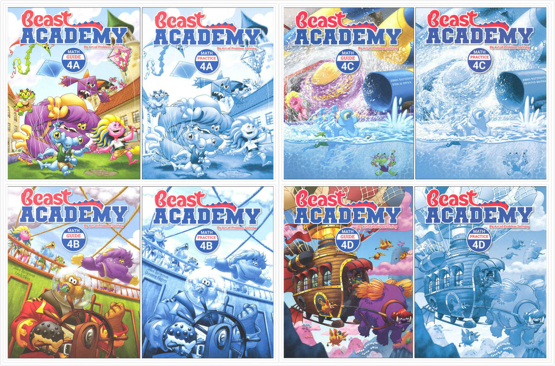 Art of Problem Solving: Beast Academy Grade 4 Complete Books Set (8 Books) - Math Guide 4A, 4B, 4C, 4D & Math Practice 4A, 4B, 4C, 4D
