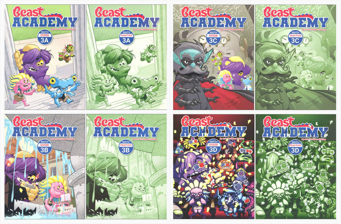 Art of Problem Solving: Beast Academy Grade 3 Complete Books Set (8 Books) - Math Guide 3A, 3B, 3C, 3D & Math Practice 3A, 3B, 3C, 3D