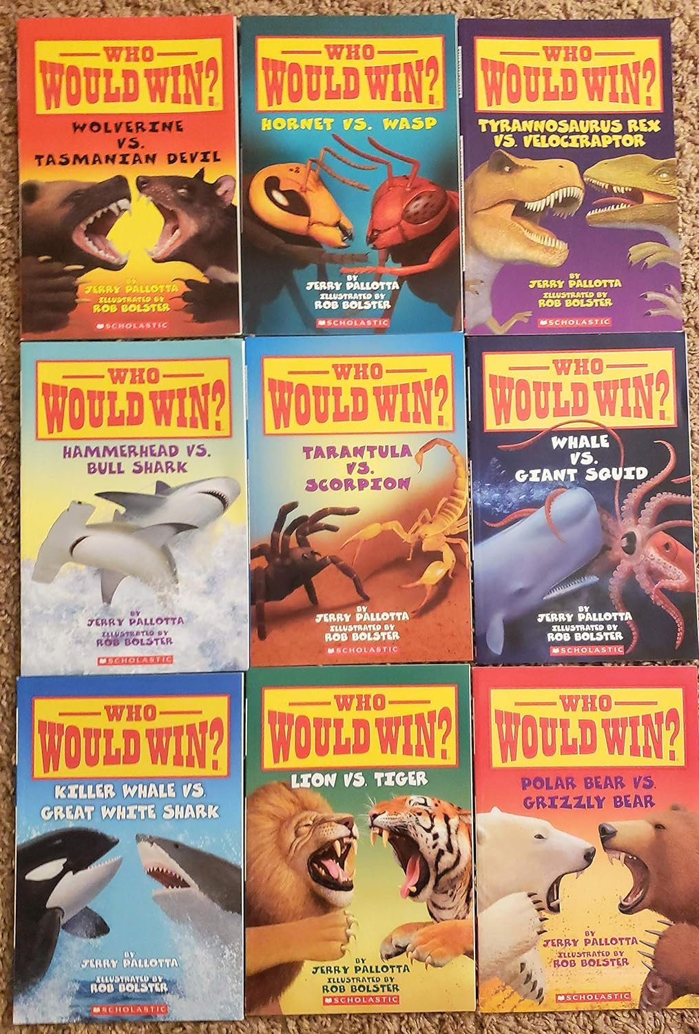 Who Would Win? Series Collection of 8 Books By Jerry Pallotta and Rob Bolster (Includes: Whale Vs. Giant Squid; Tarantula Vs Scorpion; Tyrannosaurus Rex Vs Velociraptor; Komodo Dragon Vs. King Cobra; Lion Vs Tiger;Killer Whale Vs Great White Shark;...