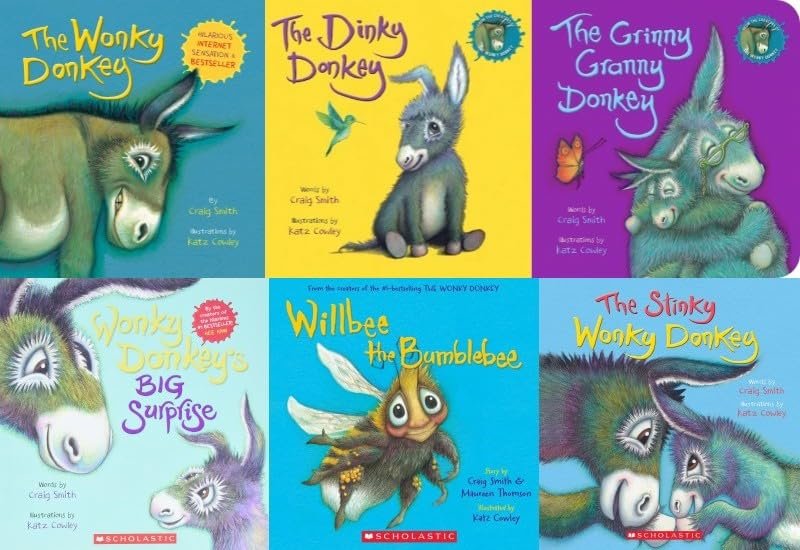 Wonky Donkey Series 6 Books Set: The Wonky Donkey, The Dinky Donkey, The Grinny Granny Donkey, Wonky Donkey's Big Surprise, Willbee the Bumblebee, The Stinky Wonky Donkey (Paperback)