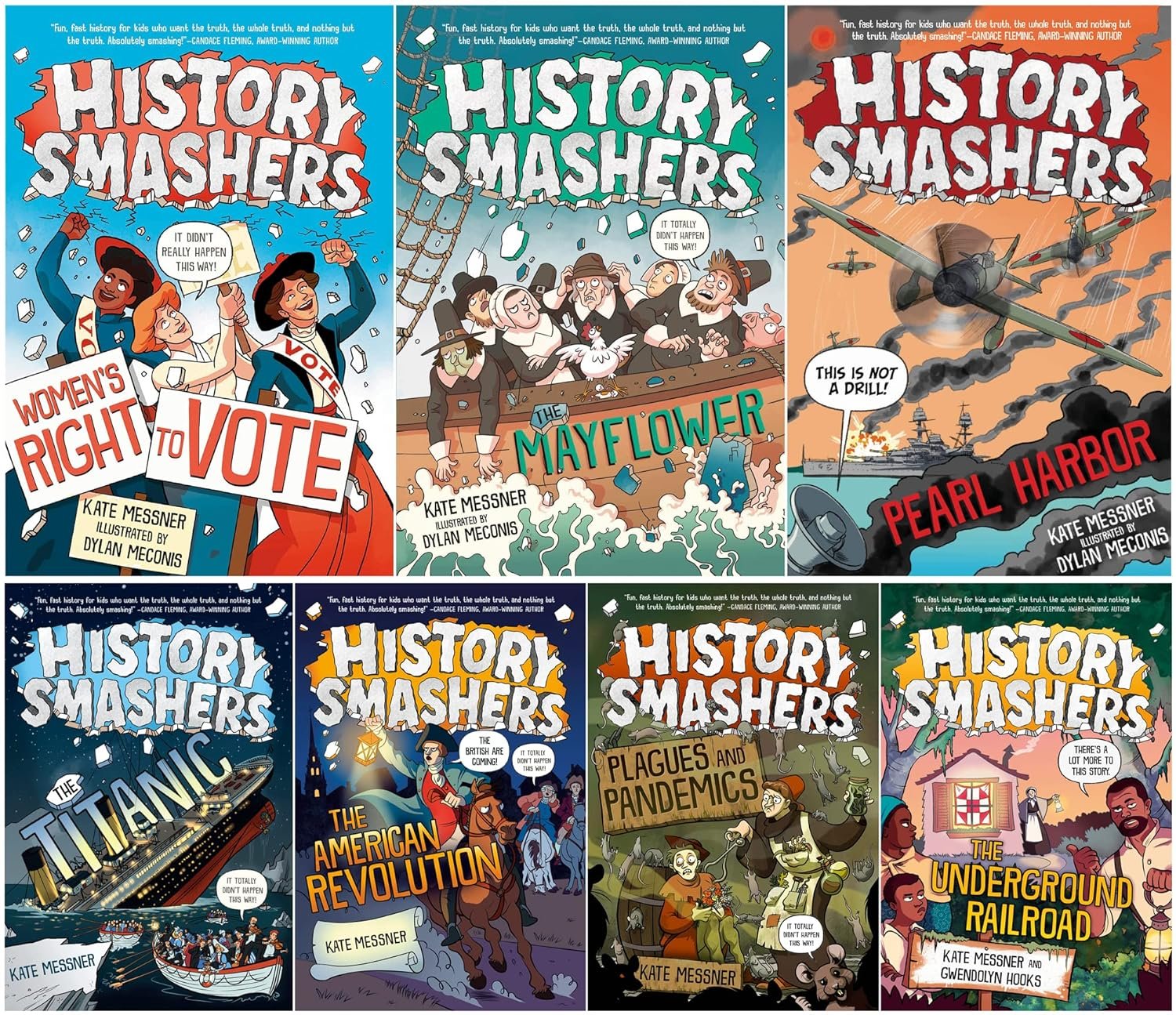 This History Smashers Series Complete 7 Books Collection includes the following 1. Women's Right to Vote 9780593120347 2. The Mayflower 9780593120316 3. Pearl Harbor 9780593120378 4. The Titanic 9780593120439 5. The American Revolution 9780593120460 6. Plagues and Pandemics 9780593120408 7. The Underground Railroad 9780593428931