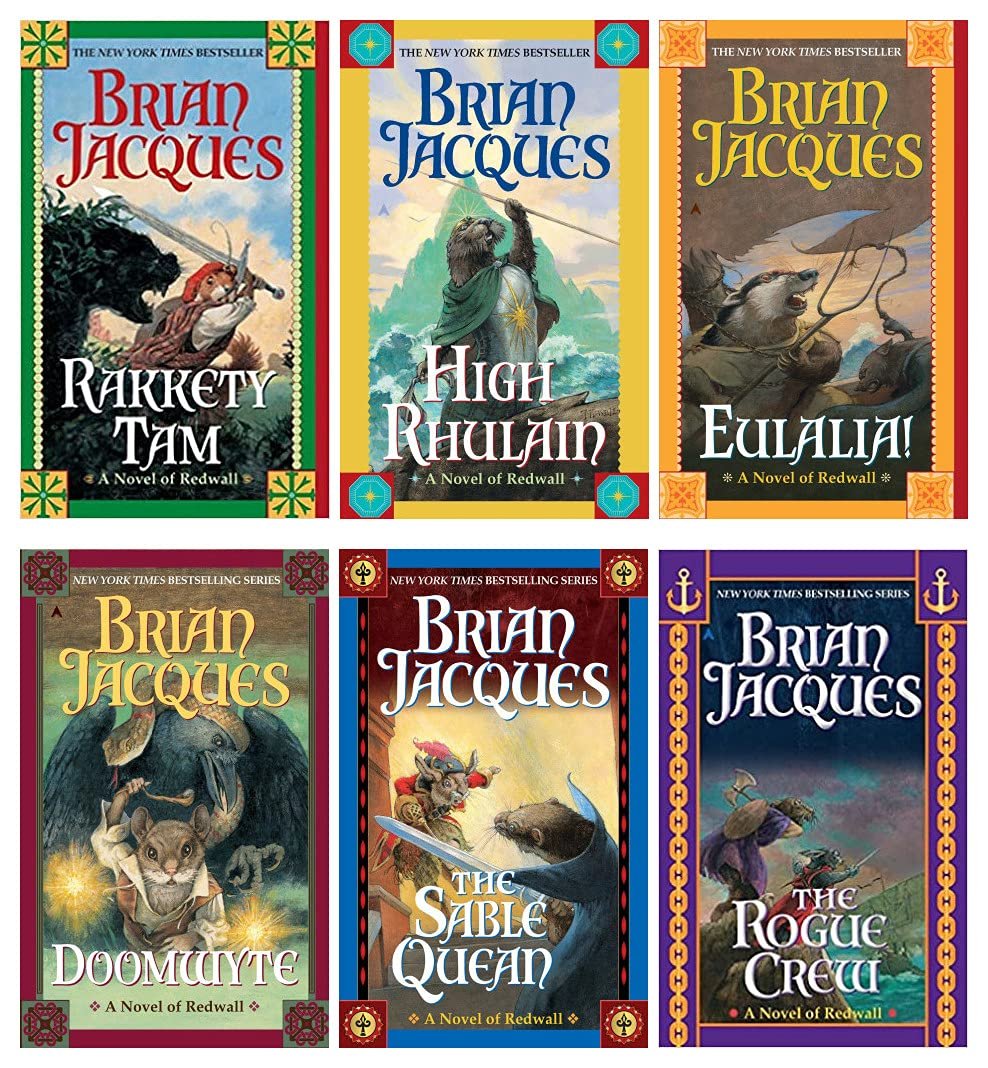 This Brian Jacques Redwall Series SET III includes 6 1. Rakkety Tam 9780441013180 2. High Rhulain 9780441014361 3. Eulalia! 9780441016235 4. Doomwyte 9780441017782 5. The Sable Quean 9780441019984 6. The Rogue Crew 9781937007485