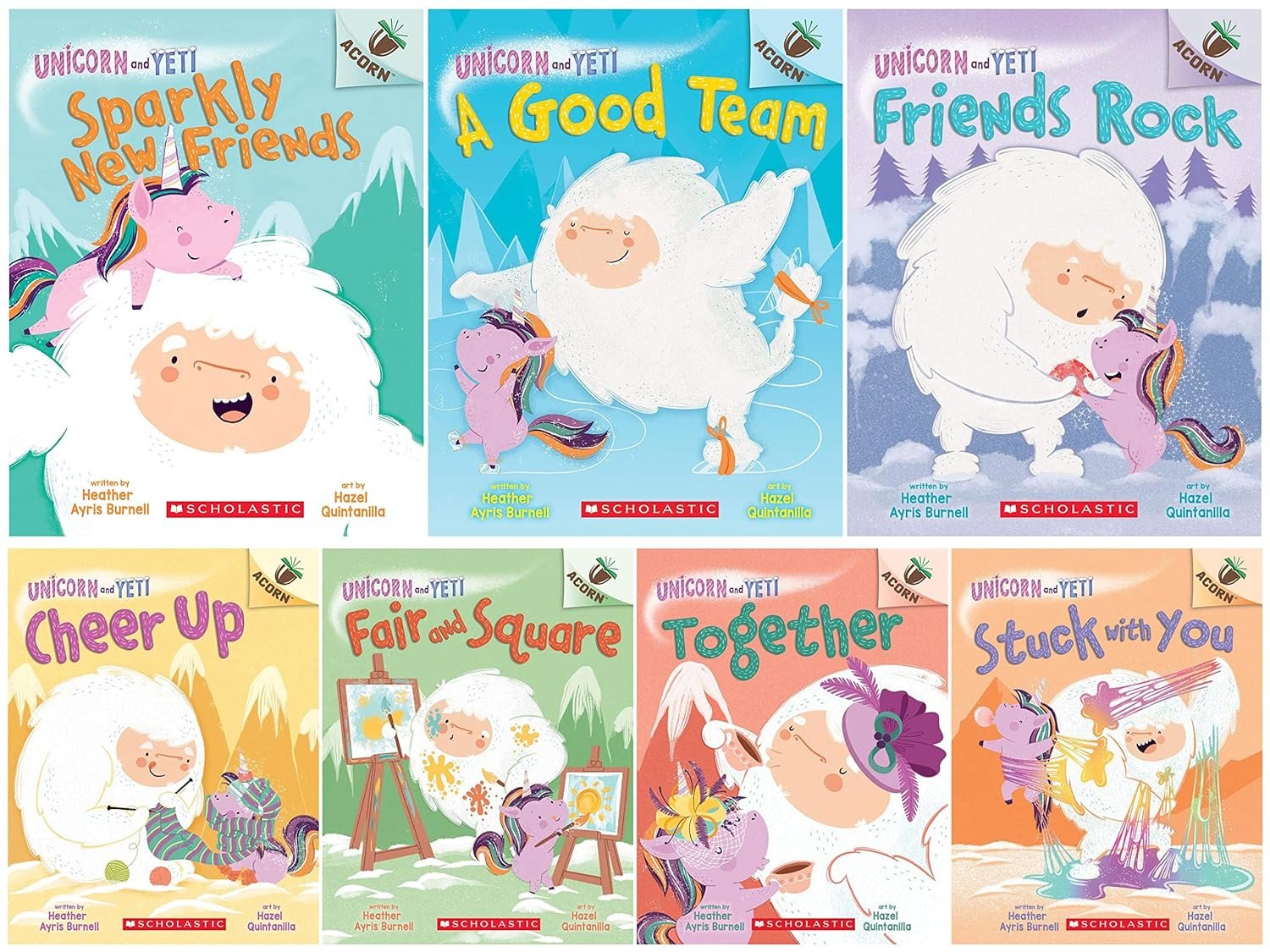 This Unicorn and Yeti Series Set includes 7 1. SPARKLY NEW FRIENDS 9781338329018 2. A GOOD TEAM 9781338329049 3. FRIENDS ROCK 9781338329070 4. CHEER UP 9781338627695 5. FAIR AND SQUARE 9781338627725 6. Together 9781338627756 7. Stuck with You 9781338826784
