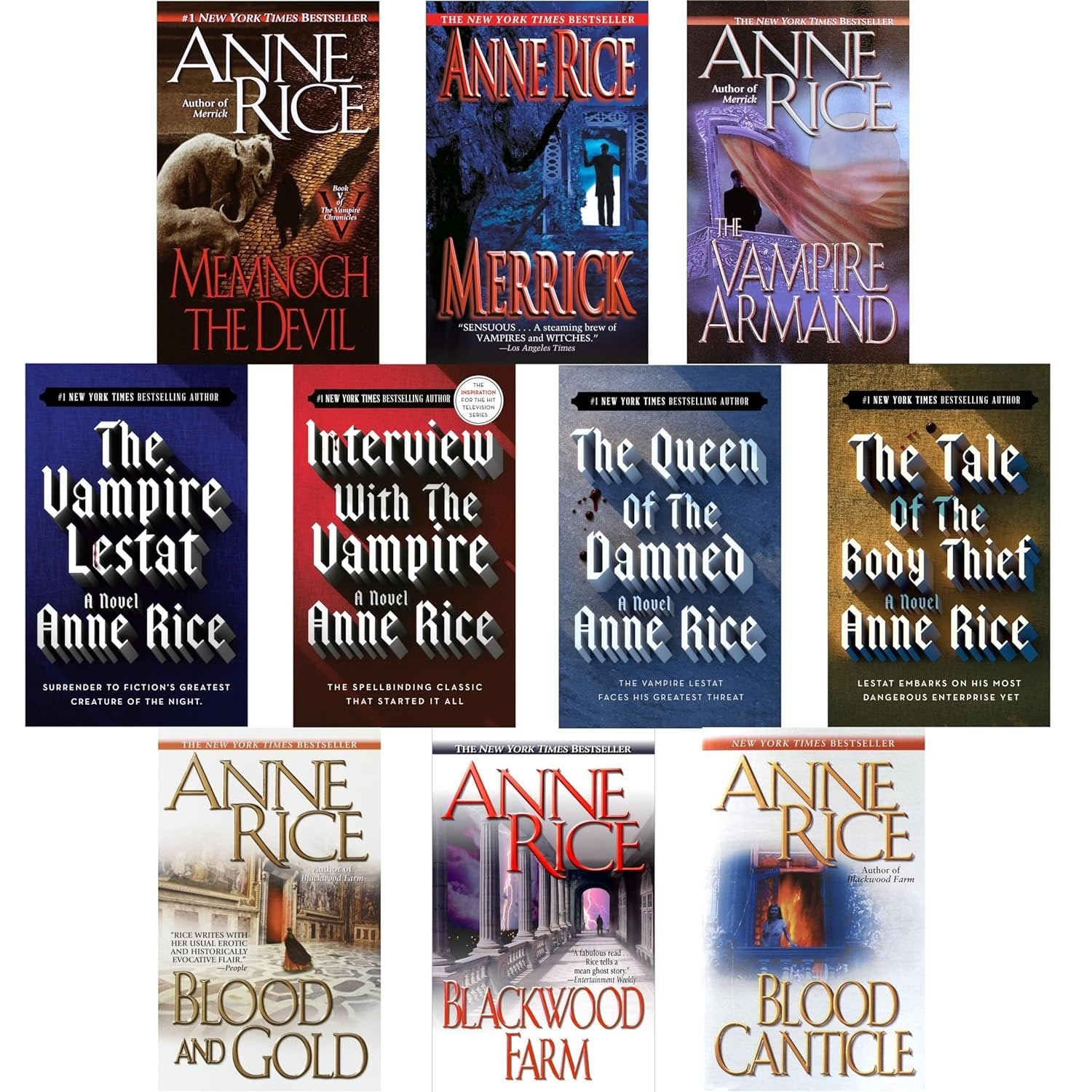 This Vampire Chronicles Series 10 Books Set includes the following Books: 1. Interview with the Vampire 9780345337665 2. The Vampire Lestat 9780345313867 3. The Queen of the Damned 9780345351524 4. The Tale of the Body Thief 9780345384751 5. Memnoch the Devil 9780345409676 6. The Vampire Armand 9780345434807 7. Merrick 9780345422408 8. Blood and Gold 9780345409324 9. Blackwood Farm 9780345443687 10. Blood Canticle 9780345443694